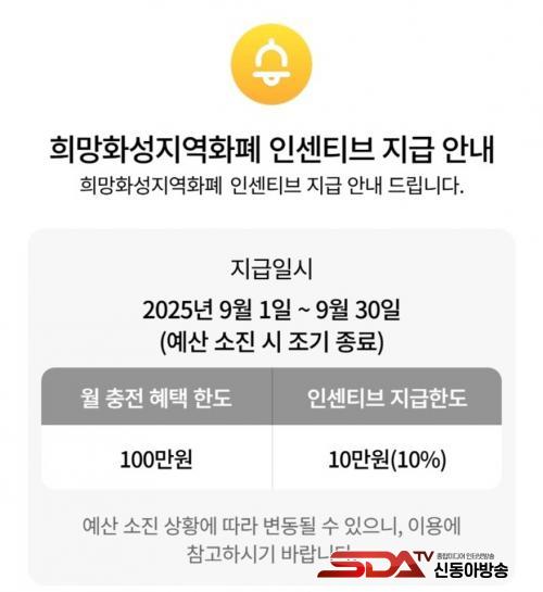 [½Åµ¿¾Æ¹æ¼Û=ÀÌÀçö±âÀÚ] È­¼ºÆ¯·Ê½Ã(½ÃÀå Á¤¸í±Ù)°¡ 9¿ù°ú 10¿ù µÎ ´Þ°£ ¡®Èñ¸ÁÈ­¼ºÁö¿ªÈ­Æó¡¯ÀÇ Àμ¾Æ¼ºê°¡ Áö±ÞµÇ´Â °³Àκ° ±¸¸Å Çѵµ¸¦ ¿ù ÃÖ´ë 50¸¸ ¿ø¿¡¼­ 100¸¸ ¿ø±îÁö·Î µÎ ¹è »óÇâÇÑ´Ù°í 2ÀÏ ¹àÇû´Ù.