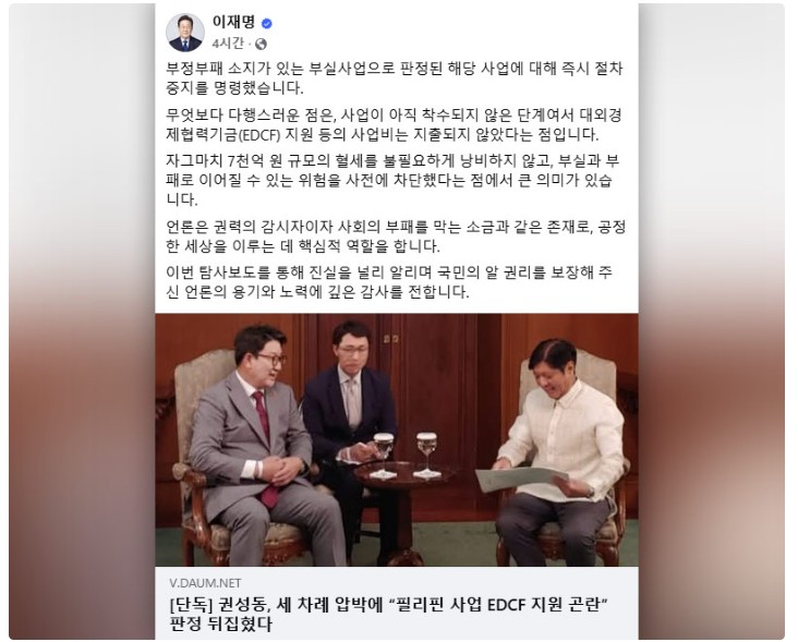 ÀÌÀç¸í ´ëÅë·ÉÀÌ ¡°ÇØ´ç »ç¾÷ Áï½Ã ÁßÁö¡±¸¦ ¸í·ÉÇß´Ù.