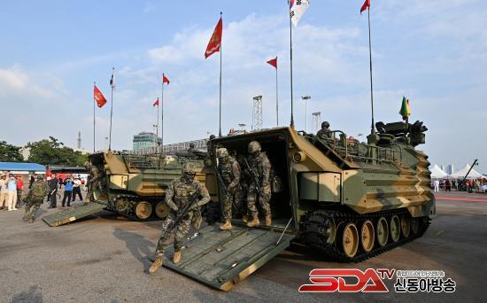 ±â³ä½Ä ÈÄ À̾îÁø »ó·úÀÛÀü À翬Çà»ç¿¡¼´Â ÇØ±º¡¤Çغ´´ë À庴µéÀÌ Çï±â, »ó·úÀå°©Â÷, °ø±âºÎ¾çÁ¤ µî ½ÇÁ¦ Àü·ÂÀ» ÅõÀÔÇØ 75³â Àü ÀüÅõ¸¦ »ý»ýÈ÷ ÀçÇöÇß´Ù. ÇöÀåÀ» ãÀº ÂüÀü¿ë»çµéÀº ¼÷¿¬ÇÑ Ç¥Á¤À¸·Î ´ç½ÃÀÇ ±â¾ïÀ» µÇ»õ°å´Ù.