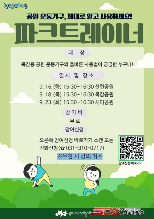 ¶ÇÇÑ, 9¿ù 26ÀÏ ´É°îµ¿ ½Å¾ÈÀνººô, 10¿ù 17ÀÏ ÀåÇöµ¿ LH18´ÜÁö ¿îµ¿±â±¸ Á¸¿¡¼ ¿ÀÈÄ 4½ÃºÎÅÍ ÇÑ ½Ã°£¾¿ °Ç°¾ÆÆÄÆ® ÁÖ¹ÎÀ» ´ë»óÀ¸·Î ¡®Ã£¾Æ°¡´Â ÆÄũƮ·¹À̳ʡ¯ ÇÁ·Î±×·¥À» ¿î¿µÇÒ ¿¹Á¤ÀÌ´Ù.