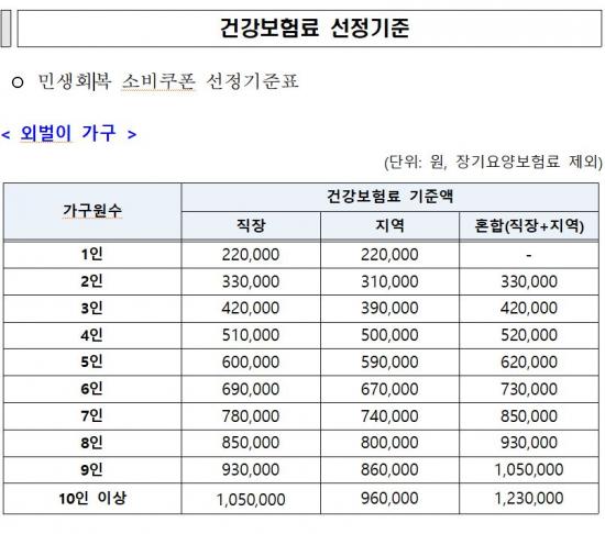 Áö±Þ ´ë»óÀº °¡±¸ ÇÕ»ê ¼Òµæ »óÀ§ 10%¸¦ Á¦¿ÜÇÑ Àü ±¹¹ÎÀ¸·Î, Áö³ 6¿ù ºÎ°úµÈ °Ç°º¸Çè·á º»Àκδã±Ý ±âÁØ¾× ÀÌÇÏÀÎ °¡±¸°¡ ÇØ´çµÈ´Ù. ´Ù¸¸, 2024³â Àç»ê¼¼ °ú¼¼Ç¥ÁØ ÇÕ°è¾×ÀÌ 12¾ï ¿ø ÃʰúÀÎ °¡±¸, 2024³âµµ ±Í¼Ó ±ÝÀ¶¼Òµæ ÇÕ°è¾×ÀÌ 2õ¸¸ ¿øÀ» ÃʰúÀÎ °¡±¸´Â °Ç°º¸Çè·á º»Àκδã±Ý°ú »ó°ü¾øÀÌ Áö±Þ ´ë»ó¿¡¼ Á¦¿ÜµÈ´Ù.