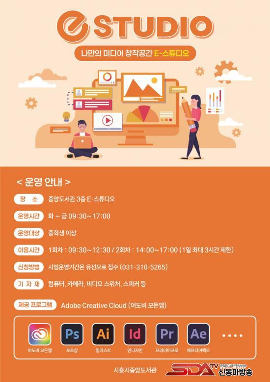 [½Åµ¿¾Æ¹æ¼Û ½ÃÈï½Ã=À̽ŵ¿±âÀÚ] ½ÃÈï½ÃÁß¾Óµµ¼­°üÀº ½Ã¹ÎµéÀÇ ¹Ìµð¾î âÀÛȰµ¿À» Àû±Ø Áö¿øÇϱâ À§ÇØ µµ¼­°ü 3Ãþ¿¡ À§Ä¡ÇÑ e-½ºÆ©µð¿À¿¡ ¾îµµºñ Å©¸®¿¡ÀÌÆ¼ºê Ŭ¶ó¿ìµå(Adobe Creative Cloud)¸¦ µµÀÔÇØ ¿À´Â 9¿ù 25ÀϺÎÅÍ ½Ã¹ü ¿î¿µÀ» ½ÃÀÛÇÑ´Ù.