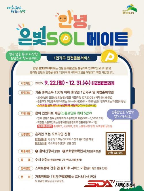 [½Åµ¿¾Æ¹æ¼Û ÀºÆò±¸=À̽ŵ¿±âÀÚ] ¼­¿ï ÀºÆò±¸´Â Áö³­ 22ÀϺÎÅÍ 1ÀÎ °¡±¸ ¾ÈÀüµ¹º½¼­ºñ½º ¡®¾È³ç, ÀººûSOL¸ÞÀÌÆ®¡¯ Âü¿©ÀÚ ¸ðÁýÀ» ½ÃÀÛÇß´Ù°í ¹àÇû´Ù.
