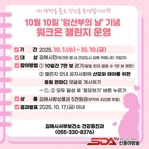 À̹ø 縰Áö´Â ¿Èê°£ 7¸¸ º¸ ´Þ¼ºÀ» ¸ñÇ¥·Î ÇÑ´Ù. ÇÏ·ç ÃÖ´ë 1¸¸ º¸¸¦ ÀÎÁ¤Çϸç, °ÉÀ½ ¼ö ´Þ¼º ÈÄ »ê¸ð¿Í žƿ¡°Ô ÀüÇÏ´Â ÀÀ¿ø ÇѸ¶µð¸¦ ´ñ±Û·Î ³²±ä 420¸í¿¡°Ô Ãß÷À» ÅëÇØ ±èÇØ»ç¶û»óǰ±Ç 5õ¿ø±ÇÀ» Á¦°øÇÑ´Ù.