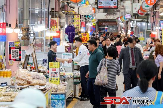 [½Åµ¿¾Æ¹æ¼Û µµºÀ±¸=À̽ŵ¿±âÀÚ] ¿À¾ð¼® µµºÀ±¸Ã»ÀåÀÌ Ãß¼® ´ë¸ñÀ» ¾ÕµÐ Áö¿ª ³» ÀüÅë½ÃÀåÀ» ã¾Æ »óÀεéÀ» °Ý·ÁÇϰí ÀåÀ» º¸·¯ ³ª¿Â ±¸¹Îµé°ú Àλ縦 ³ª´³´Ù.