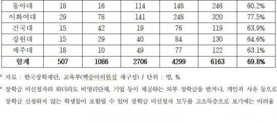 ¡à ±¹È¸ ±³À°À§¿øÈ¸ ¹é½Â¾Æ ÀÇ¿ø(´õºÒ¾î¹ÎÁÖ´ç)ÀÌ Çѱ¹ÀåÇÐÀç´Ü°ú ±³À°ºÎ¿¡¼­ Á¦Ãâ¹ÞÀº ±¹Á¤°¨»ç ÀڷḦ ºÐ¼®ÇÑ °á°ú ¿ÃÇØ 1Çб⠷νºÄð ÀçÇлý 6,163¸í Áß °í¼ÒµæÃþ ÃßÁ¤ ºñÀ²Àº 69.8%(4,299¸í)·Î Áý°èµÆ´Ù. Àü³âµµ(68.2%)º¸´Ù 1.6%Æ÷ÀÎÆ® ´Ã¾î³­ ±Ô¸ð´Ù.