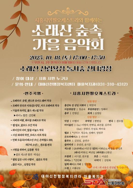 ¡®¼Ò·¡»ê ½£¼Ó °¡À» À½¾Çȸ¡¯´Â ¼Ò·¡»ê ¼Ó ³ª¹«·Î µÑ·¯½ÎÀÎ °ø°£¿¡¼ À½¾ÇÀ» ÅëÇÑ »ç¶÷°ú ÀÚ¿¬ÀÇ Á¶È¸¦ ÁÖÁ¦·Î ÈÞ½Ä °°Àº ¿¬ÁÖ¸¦ ¼±º¸ÀÏ ¿¹Á¤ÀÌ´Ù. ƯÈ÷ È£¸¥, Ÿ¾Ç±â µî ´Ù¾çÇÑ ¾Ç±â°¡ ´õÇØÁ® ÇÑÃþ dz¼ºÇÑ °¨µ¿À» ÀüÇÑ´Ù.