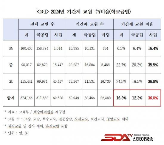 ¡à ±¹È¸ ±³À°À§¿øÈ¸ ¹é½Â¾Æ ÀÇ¿ø(´õºÒ¾î¹ÎÁÖ´ç)ÀÌ ±³À°ºÎ·ÎºÎÅÍ Á¦Ãâ¹ÞÀº ¡®½Ã¡¤µµº° Á¤±Ô ¹× ±â°£Á¦ ±³¿ø ÇöȲ¡¯ ÀڷḦ ºÐ¼®ÇÑ °á°ú, Áö³ÇØ Àüü »ç¸³Çб³ ±³¿ø 6¸¸ 2,528¸í Áß 2¸¸ 2,483¸í(36.0%)ÀÌ ±â°£Á¦ ±³¿øÀÎ °ÍÀ¸·Î µå·¯³µ´Ù.