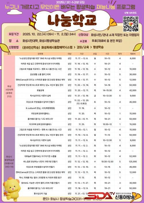 È­¼ºÆ¯·Ê½Ã, 2025³â 3Â÷ ¡®³ª´®Çб³¡¯ ¼ö°­»ý ¸ðÁý