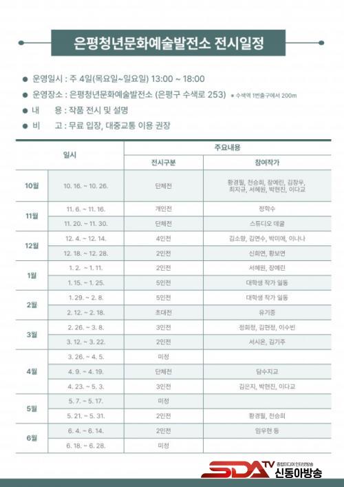 Àü½Ã´Â ÀºÆòû³â¹®È¿¹¼ú¹ßÀü¼Ò¿¡¼ ¸ÅÁÖ ¸ñ¿äÀϺÎÅÍ ÀÏ¿äÀÏ, ¿ÀÈÄ 1½ÃºÎÅÍ 6½Ã±îÁö ÁøÇàµÇ¸ç, ¹æ¹®°´µéÀº ´©±¸³ª ÀÚÀ¯·Ó°Ô °ü¶÷ÇÒ ¼ö ÀÖ´Ù. ƯÈ÷ ¸Å´Þ 2~3ȸ Àü½Ãȸ°¡ º¯°æµÅ »õ·Î¿î ÀÛǰµéÀÌ °è¼ÓÇØ¼ ¼±º¸ÀÏ ¿¹Á¤ÀÌ´Ï, ÀºÆò±¸¹ÎµéÀÇ ¸¹Àº °ü½É°ú ¹æ¹®À» ¹Ù¶õ´Ù.