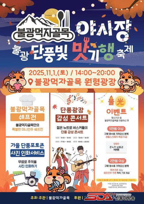 À̹ø Çà»ç´Â ¼¿ï½Ã ¡®2025³â ÀüÅë½ÃÀå ¾ß°£ ¹× À½½Ä¹®È Ȱ¼ºÈ Áö¿ø»ç¾÷¡¯À¸·Î ¼±Á¤µÅ ºÏÇÑ»ê ´ÜdzÀÌ ÀýÁ¤¿¡ À̸£´Â °¡À» Á¤Ãë ¼Ó¿¡¼ ¿¸°´Ù. ºÏÇÑ»ê µî»ê°´°ú Àα٠ÁֹΠ´©±¸³ª ¹«·á·Î Âü¿©ÇÒ ¼ö ÀÖÀ¸¸ç, »óÁ¡°¡°¡ ÁÖµµÇØ ÁÖ¹ÎÀÌ ÇÔ²² Áñ±â´Â ¡®Âü¿©Çü °ñ¸ñÃàÁ¦¡¯·Î ²Ù¸çÁø´Ù.