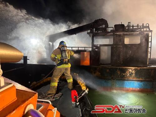 Áö³ 8¿ù 16ÀÏ »õº®, ¿©¼ö AÁ¤¹ÚÁö¿¡¼ ¼®À¯Á¦Ç°¿î¹Ý¼±(2,692Åæ)°ú ¿ë´Þ¼±(24Åæ)¿¡ ÈÀç°¡ ¹ß»ýÇÏÀÚ, °æºñ±¸Á¶°ú À¯º´¿í °æÀåÀÌ Æø¹ß À§ÇèÀ» ¹«¸¨¾²°í ¼±¿ø 18¸íÀ» Àü¿ø ±¸Á¶Çß´Ù.