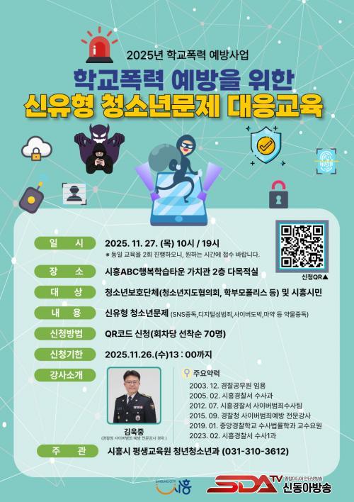 À̹ø ±³À°Àº û¼Ò³âÁöµµÇùÀÇȸ ¹× ¾î¸Ó´Ï¤ýÇкθðÆú¸®½º µî °ü³» û¼Ò³âº¸È£´Üü¸¦ ºñ·ÔÇÑ ¸ðµç ½ÃÈï½Ã¹ÎÀ» ´ë»óÀ¸·Î ÁøÇàµÇ¸ç, »çÀ̹ö¹üÁË, »çÀ̹öµµ¹Ú, ¾à¹°Áßµ¶ µî ÃÖ±Ù ±ÞÁõÇϰí Àִ û¼Ò³â ¹®Á¦¿¡ µû¸¥ Çб³Æø·ÂÀ» ¿¹¹æÇϰíÀÚ ¸¶·ÃµÆ´Ù.