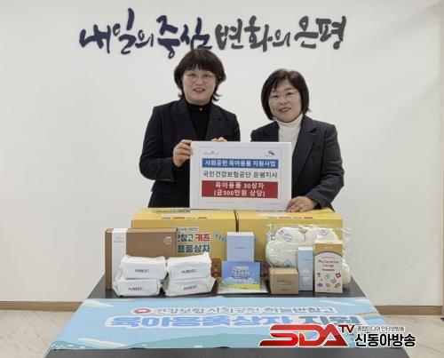À̳¯ ±¹¹Î°Ç°º¸Çè°ø´Ü ÀºÆòÁö»ç´Â À¯¾Æ¿ë ¼¼Á¦, ÀÌÀ¯½Ä ¿ë±â, Ÿ¿ù, ¹Ùµð·Î¼Ç µî ±Ý 10¸¸ ¿ø »ó´çÀÇ À°¾Æ¿ëǰ »óÀÚ ÃÑ 30°³¸¦ Àü´ÞÇß´Ù. Áö¿ø ¹°Ç°Àº °ü³» »ýȰÀÌ ¾î·Á¿î ¿µÀ¯¾Æ Ãâ»ê¡¤º¸À° °¡±¸¿¡ Àü´ÞµÉ ¿¹Á¤ÀÌ´Ù.
