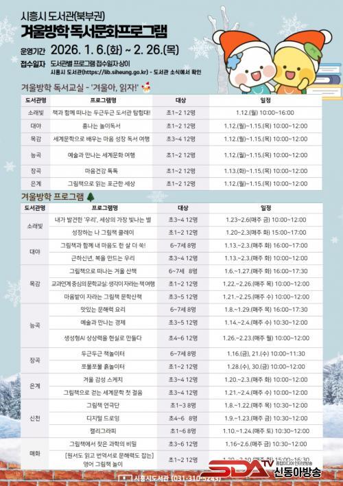 ÇÁ·Î±×·¥ Âü°¡ ½ÅûÀº µµ¼°üº°·Î »óÀÌÇÏ´Ù. ÀÚ¼¼ÇÑ ³»¿ëÀº ¡®½ÃÈï½Ã µµ¼°ü ´©¸®Áý(lib.siheung.go.kr) ¡æ ¹®È°Á ½Åû ¡æ °üº° ¼±Å᯿¡¼ È®ÀÎÇÒ ¼ö ÀÖ´Ù. ´õ ÀÚ¼¼ÇÑ ¹®ÀÇ´Â ¼Ò·¡ºûµµ¼°ü(031-310-5243)À¸·Î ÇÏ¸é µÈ´Ù.