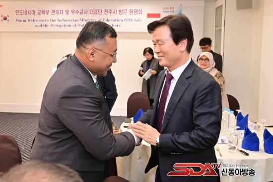 25ÀÏ ¿­¸° ȯ¿µ Çà»ç¿¡¼­ Á¶±ÔÀÏ ÁøÁÖ½ÃÀåÀº ¡°À§³Ê ÁöÇÖ ¾Ç¹Ù¸£ ±¹Àå´ÔÀ» ºñ·ÔÇÑ Àεµ³×½Ã¾Æ ±³À°ºÎ °ü°èÀÚ¿Í ¿ì¼ö±³»ç ´ëÇ¥´ÜÀÇ ¹æ¹®À» Áø½ÉÀ¸·Î ȯ¿µÇÑ´Ù¡±¸ç ¡°µðÁöÅÐ ±³Àç¿Í ICT ±³À° ±â¼úÀ» ¸Å°³·Î ¾çÃøÀÌ ÇÔ²² µµ¾àÇÏ´Â ¶æ±íÀº °è±â°¡ µÇ±æ ±â´ëÇÑ´Ù¡±°í ¸»Çß´Ù.