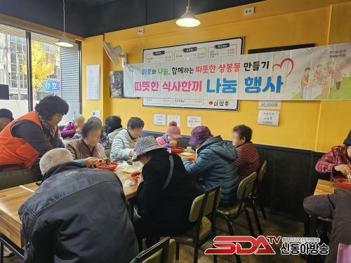 À̳¯ Çà»ç´Â ¿ÀÀü 11½ÃºÎÅÍ ¿ÀÈÄ 1½Ã±îÁö ÁøÇàµÇ¾úÀ¸¸ç, »óºÀµ¿ Áö¿ª»çȸº¸ÀåÇùÀÇü À§¿øµéÀÌ Âü¿©ÇØ ¼ºù°ú ¾È³»¸¦ ¸Ã¾Æ ¾î¸£½ÅµéÀÌ Æí¾ÈÇÏ°Ô ½Ä»çÇÒ ¼ö ÀÖµµ·Ï Áö¿øÇß´Ù.