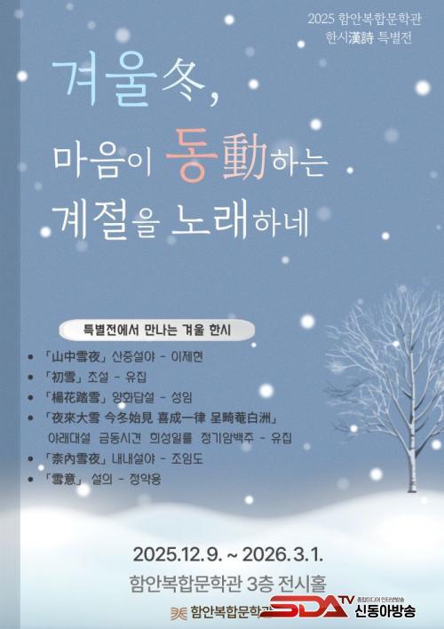 [½Åµ¿¾Æ¹æ¼Û °æ³²ÇÔ¾È=À̽ŵ¿±âÀÚ] ÇԾȱºÀº 12¿ù 9ÀϺÎÅÍ 2026³â 3¿ù 1ÀϱîÁö ÇԾȺ¹ÇÕ¹®Çаü 3Ãþ Àü½ÃȦ¿¡¼­ 2025 ÇѽÃ(ùÓãÌ) Ưº°Àü ¡®°Ü¿ï(ÔÏ), ¸¶À½ÀÌ µ¿(ÔÑ)ÇÏ´Â °èÀýÀ» ³ë·¡Çϳס¯¸¦ °³ÃÖÇÑ´Ù°í ¹àÇû´Ù.