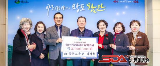 [½Åµ¿¾Æ¹æ¼Û °æ³²ÇÔ¾È=À̽ŵ¿±âÀÚ] ÇԾȱºÀº ¹ý¼ö¸é Ȳ»ç¸® Ãâ½ÅÀÇ ¹Ú¼ºÈ« Àü ÇÕõ±³À°ÀåÀÌ °íÇâ ÀÎÀç À°¼ºÀ» À§ÇÑ ÀåÇбâ±Ý 300¸¸ ¿øÀ» ±âŹÇß´Ù°í ¹àÇû´Ù.