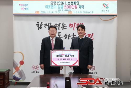 ¿À¼ºÈ¯ ´çÁø½ÃÀåÀº ¡°¾î·Á¿î °æÁ¦ ¿©°Ç ¼Ó¿¡¼µµ Áö¿ª»çȸ¸¦ À§ÇÑ µû¶æÇÑ ³ª´®¿¡ µ¿ÂüÇØ ÁֽŠ¹Ì·¡¾Ø¼ÇØ¿¡³ÊÁö¿¡ ±íÀÌ °¨»çµå¸°´Ù¡±¸ç ¡°±âÅ¹ÇØ ÁֽмÒÁßÇÑ ¼º±ÝÀº µµ¿òÀÌ ²À ÇÊ¿äÇÑ ÀÌ¿ôµé¿¡°Ô Àß Àü´ÞµÉ ¼ö ÀÖµµ·Ï Çϰڴ١±°í ¸»Çß´Ù.