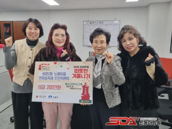 [½Åµ¿¾Æ¹æ¼Û µµºÀ±¸=À̽ŵ¿±âÀÚ] ¼­¿ï µµºÀ±¸ ½Ö¹®2µ¿ÀÌ Áö³­ÇØ 12¿ù 24ÀÏ ½Ö¹®2µ¿ ÇѸ¶À½ÃàÁ¦ÃßÁøÀ§¿øÈ¸·ÎºÎÅÍ ¼º±Ý 200¸¸ ¿øÀ» Àü´Þ¹Þ¾Ò´Ù°í ¹àÇû´Ù. ¼º±ÝÀº ¡®2026 Èñ¸Á¿Âµ¹ µû¶æÇÑ °Ü¿ï³ª±â¡¯ »ç¾÷À» ÅëÇØ Áö¿ª ³» ¾î·Á¿î ÀÌ¿ôÀ» À§ÇÑ »ýȰºñ Áö¿ø µî¿¡ »ç¿ëµÉ ¿¹Á¤ÀÌ´Ù.