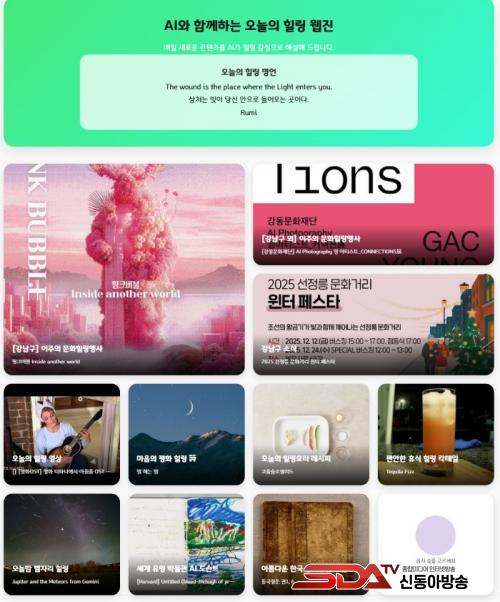 À¥Áø ³»¿ëÀº °­³²Èú¸µ¼¾ÅÍ È¨ÆäÀÌÁö(www.gangnam.go.kr/healing/index.do) ¾Ë¸²¸¶´ç ¸Þ´º¿¡¼­ È®ÀÎÇÒ ¼ö ÀÖ´Ù. ±¸´Â ¾ÕÀ¸·Îµµ ´Ù¾çÇÑ ÄÜÅÙÃ÷¸¦ º¸°­ÇØ ¿ÀÇÁ¶óÀÎ ÇÁ·Î±×·¥°ú ½Ã³ÊÁö¸¦ ³»´Â ¡®µðÁöÅÐ Èú¸µ ¶óÀÌÇÁ¡¯ ȯ°æÀ» ±¸ÃàÇØ ³ª°¥ ¹æÄ§ÀÌ´Ù.