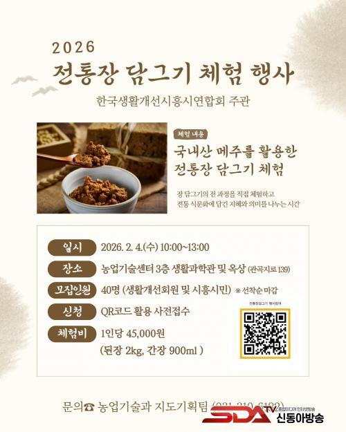 À̹ø Çà»ç´Â Çѱ¹»ýȰ°³¼±½ÃÈï½Ã¿¬ÇÕȸ ȸ¿øµéÀÌ ±¹³»»ê ÄáÀ¸·Î ¸¸µç ¸ÞÁÖ¸¦ Ȱ¿ëÇØ ÀüÅë ¹æ½ÄÀÇ Àå ´ã±×±â Àü °úÁ¤À» ½Ã¹Îµé¿¡°Ô Á÷Á¢ Àü¼öÇϴ üÇèÇü ÇÁ·Î±×·¥ÀÌ´Ù. ¸ÞÁÖ¿Í Ç׾Ƹ®ÀÇ ¼¼Ã´¤ý¼Òµ¶ µî öÀúÇÑ »çÀü Áغñ¸¦ ÅëÇØ ¾ÈÀüÇϰí ǰÁú ³ôÀº üÇèÀÌ ÀÌ·ïÁöµµ·Ï Çß´Ù. ¶ÇÇÑ, ÀÌ¿ô°ú ÇÔ²² ÀåÀ» ´ã±×´Â °úÁ¤À» ÅëÇØ ÀüÅë ½Ä¹®ÈÀÇ °¡Ä¡¸¦ µÇ»õ±â°í, ¼¼´ë °£ ¼ÒÅë°ú ÁֹΠÈÇÕÀ» µµ¸ðÇÏ´Â µ¥ Àǹ̸¦ µÎ°í ÀÖ´Ù.
