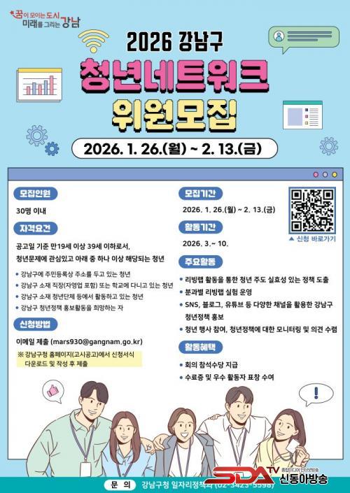 [½Åµ¿¾Æ¹æ¼Û °­³²±¸=À̽ŵ¿±âÀÚ] ²ÞÀÌ ¸ðÀÌ´Â µµ½Ã, ¹Ì·¡¸¦ ±×¸®´Â ¼­¿ï °­³²±¸°¡ ¡®Ã»³â³×Æ®¿öÅ©¡¯ 7±â À§¿øÀ» 2¿ù 13ÀϱîÁö °ø°³ ¸ðÁýÇÑ´Ù. ¿ÃÇØ 7±â´Â û³â Á¤Ã¥ ¸®ºù·¦°ú û³âÀÇ ³¯ Çà»ç¸¦ ¿¬°èÇÏ´Â ¿î¿µ ¹æ½ÄÀ» µµÀÔÇØ Á¤Ã¥ ¾ÆÀ̵ð¾îÀÇ ÇöÀ强°ú ü°¨µµ¸¦ ³ôÀÏ °èȹÀÌ´Ù.