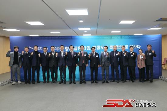 Çà»ç¿¡´Â ¼ÃµÈ£ ±¹È¸ÀÇ¿ø, °ø¿µ¹Î °íÈﱺ¼ö, ¹Úµ¿½Ä »çõ½ÃÀå, °ü°è °ø¹«¿ø, ÇÐ°è ¹× »ê¾÷°è Àü¹®°¡ µîÀÌ Âü¼®ÇØ ¿ìÁÖÇ×°øº¹ÇÕµµ½Ã Ưº°¹ýÀÇ Çʿ伺°ú ÃßÁø ¹æÇâ¿¡ ´ëÇØ ½ÉµµÀÖ°Ô ³íÀÇÇß´Ù.