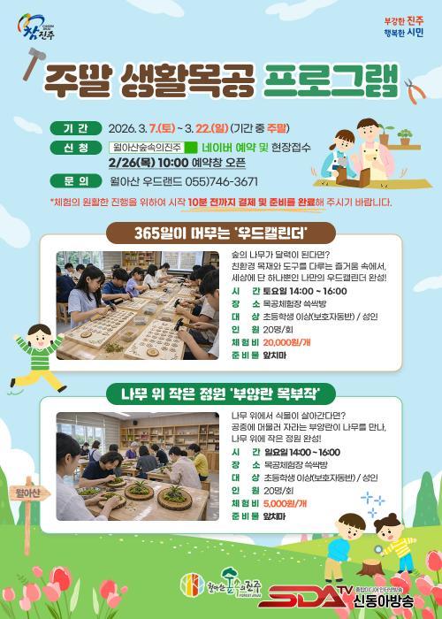 ¸ÕÀú, ¿À´Â 3¿ù 7ÀϺÎÅÍ 22ÀϱîÁö ÁÖ¸»¸¶´Ù ¡®ÁÖ¸» »ýȰ¸ñ°ø¡¯À» ¿î¿µÇϸç, ¡®365ÀÏÀÌ ¸Ó¹«´Â ¿ìµå ͏°´õ(wood calendar)¡¯¿Í ¡®³ª¹« À§ ÀÛÀº Á¤¿ø, ºÎ¾ç¶õ ¸ñºÎÀÛ¡¯À» ¼±º¸ÀδÙ. À̹ø ÇÁ·Î±×·¥Àº ³ª¹«¸¦ ÅëÇØ ½£°ú ¸ñÀçÀÇ Áö¼Ó °¡´ÉÇÑ °¡Ä¡¸¦ µÇ»õ±â°í, »ýȰ ¼Ó ģȯ°æ ½Çõ°ú ź¼ÒÁ߸³ ¹®È·Î È®»êÇÒ ¼ö ÀÖµµ·Ï ±âȹÇß´Ù.