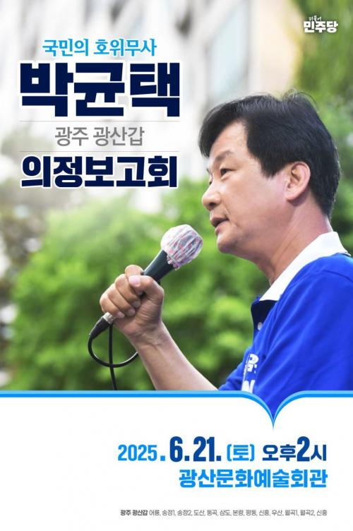 À̹ø ÀÇÁ¤º¸°íȸ´Â ¹Ú±ÕÅà ÀÇ¿øÀÌ Á¦22´ë ±¹È¸ÀÇ¿øÀ¸·Î¼ Áö³ 1³â°£ ÆîÃĿ ÀÇÁ¤È°µ¿°ú ±¤»ê±¸ÀÇ ¹Ì·¡¸¦ À§ÇÑ Ã»»çÁøÀ» Áö¿ª Áֹε鲲 Á÷Á¢ ¼³¸íÇÏ´Â ¶æ±íÀº ÀÚ¸®°¡ µÉ ¿¹Á¤ÀÌ´Ù.