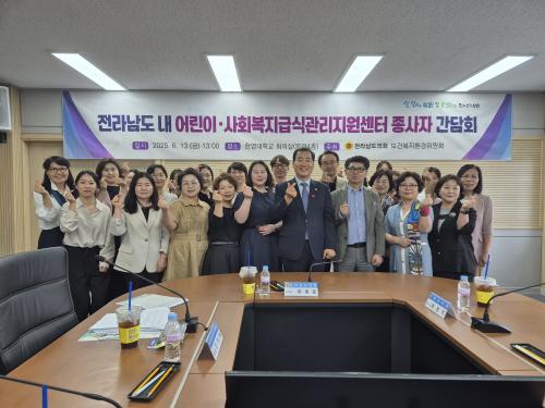 [½Åµ¿¾Æ¹æ¼ÛÀü³²¿©¼ö=±è±â³² ±âÀÚ] Àü¶ó³²µµ ³» ¾î¸°À̤ý»çȸº¹Áö±Þ½Ä°ü¸®Áö¿ø¼¾ÅÍ Á¾»çÀÚµéÀÇ ÀÓ±Ý Ã³¿ì °³¼±À» À§ÇÑ °£´ãȸ°¡ Áö³­ 6¿ù 13ÀÏ, ¿©¼ö ÇÑ¿µ´ëÇб³ ȸÀǽǿ¡¼­ °³ÃֵƴÙ. À̹ø °£´ãȸ´Â Àü¶ó³²µµÀÇȸ À̱¤ÀÏ ÀÇ¿ø(´õºÒ¾î¹ÎÁÖ´ç¤ý¿©¼ö1)ÀÌ ÁÂÀåÀ» ¸Ã¾Æ¡¦