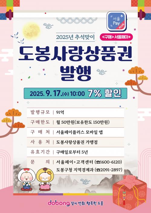 [½Åµ¿¾Æ¹æ¼Û µµºÀ±¸=À̽ŵ¿±âÀÚ] ¼­¿ï µµºÀ±¸°¡ ¿À´Â 9¿ù 17ÀÏ ¿ÀÀü 10½Ã ÃÑ 91¾ï ¿ø ±Ô¸ðÀÇ ¡®µµºÀ»ç¶û»óǰ±Ç¡¯À» ¹ßÇàÇÑ´Ù. À̹ø »óǰ±Ç ¹ßÇàÀº Ãß¼® ¸íÀýÀ» ¾ÕµÎ°í ±¸¹ÎµéÀÇ Àå¹Ù±¸´Ï ºÎ´ãÀ» ´ú°íÀÚ ÃßÁøµÆ´Ù. »óǰ±ÇÀº '¼­¿ïÆäÀÌÇ÷¯½º(¼­¿ïPay+)' ¾Û¿¡¼­ 1ÀΡ¦