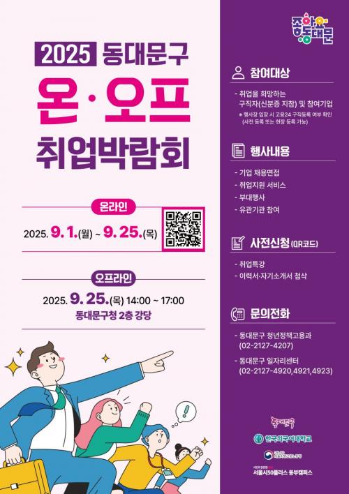 [½Åµ¿¾Æ¹æ¼Û µ¿´ë¹®±¸=À̽ŵ¿±âÀÚ] ¼­¿ï µ¿´ë¹®±¸´Â °ü³» ÀÏÀÚ¸® âÃâ ¹× ±¸Àα¸Á÷³­ ÇØ¼Ò¸¦ À§ÇØ ¡®2025 µ¿´ë¹®±¸ ¿Â¡¤¿ÀÇÁ Ãë¾÷¹Ú¶÷ȸ¡¯¸¦ °³ÃÖÇÑ´Ù. ¿Â¶óÀÎ ¹Ú¶÷ȸ´Â 1ÀϺÎÅÍ ½ÃÀÛÇØ 25ÀϱîÁö Ãë¾÷¹Ú¶÷ȸ Àü¿ë ÆäÀÌÁö(https://jobfair.incruit.com/ddm/)¸¦ ¿î¿µÀ»¡¦