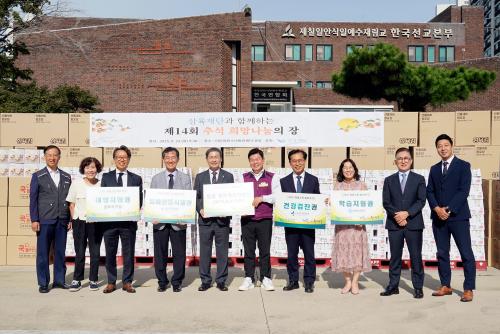 [½Åµ¿¾Æ¹æ¼Û µ¿´ë¹®±¸=À̽ŵ¿±âÀÚ] ¼­¿ï µ¿´ë¹®±¸´Â 23ÀÏ ¡®Á¦14ȸ Ãß¼® Èñ¸Á³ª´®ÀÇ À塯 ÈÄ¿ø ¹°Ç° Àü´Þ½ÄÀ» °³ÃÖÇß´Ù°í ¹àÇû´Ù. ¡®Ãß¼® Èñ¸Á³ª´®ÀÇ À塯Àº »ïÀ°Àç´ÜÀÇ ÈÄ¿øÀ¸·Î 2012³âºÎÅÍ ¸Å³â Ãß¼® ¸íÀý¸¶´Ù °ü³» ¾î·Á¿î ÀÌ¿ôµé¿¡°Ô »ýȰ¹°Ç°À» Áö¿øÇؿ ³ª´® Çࡦ