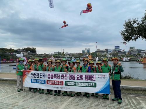 [½Åµ¿¾Æ¹æ¼Û °æ³²ÁøÁÖ=³²±Ã¿µ±â±âÀÚ] ÁøÁֽô 10¿ù ¾ÈÀüÁ¡°ËÀÇ ³¯À» ¸Â¾Æ 17ÀÏ ¡®ÁøÁÖ³²°­À¯µîÃàÁ¦À塯¿¡¼­ ½Ã¹Î°ú °ü±¤°´ÀÇ ¾ÈÀüÀ» À§ÇØ ¡®ÃàÁ¦Àå ¾ÈÀüÄ·ÆäÀΡ¯À» ½Ç½ÃÇß´Ù. À̳¯ Ä·ÆäÀÎÀº ÁøÁֽà °ü°èÀÚ¿Í ¾ÈÀüº¸¾È°ü µîÀÌ Âü°¡ÇØ ¹æ¹®°´ÀÌ À¯µîÃàÁ¦ ¸¶Áö¸· ³¯±îÁö¡¦
