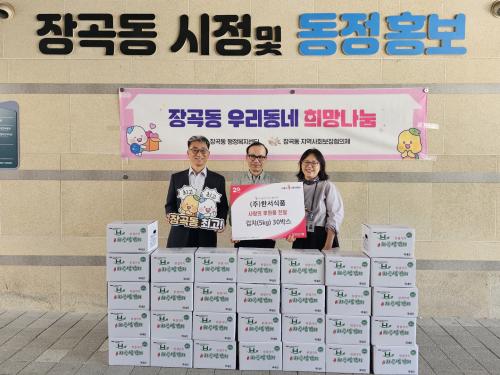 [½Åµ¿¾Æ¹æ¼Û ½ÃÈï½Ã=À̽ŵ¿±âÀÚ] ½ÃÈï½Ã Àå°îµ¿ ÇàÁ¤º¹Áö¼¾ÅÍ¿¡ Áö³­ 10¿ù 16ÀÏ ±èÄ¡ Á¦Á¶¾÷üÀÎ ¢ßÇѼ­½ÄǰÀÌ ¹æ¹®ÇØ ±èÄ¡ 5kg 30»óÀÚ¸¦ ÈÄ¿øÇϸç ÀÌ¿ô»ç¶û ½Çõ¿¡ ¾ÕÀå¼¹´Ù. ÇѼ­½ÄǰÀº ´Ù¾çÇÑ Á¾·ùÀÇ ÇѼ­±èÄ¡¸¦ ÆÇ¸ÅÇÏ´Â ±èÄ¡ Àü¹®È¸»ç·Î, Áö³­ 2¿ù Àå°îµ¿ Áö¿ª¡¦
