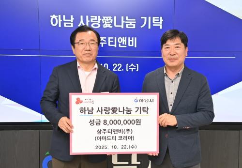[½Åµ¿¾Æ¹æ¼Û Çϳ²½Ã=À̽ŵ¿±âÀÚ] Áö³­ 22ÀÏ, ¢ß»ïÁÖÆ¼¾Øºñ(ºê·£µå¸í:¾Æ¸¶µåƼ ÄÚ¸®¾Æ)´Â ¼º±Ý 800¸¸¿øÀ» Çϳ²½Ã¿¡ Àü´ÞÇÏ°í ±âŹ½ÄÀ» °¡Á³´Ù. À̳¯ ±âŹ½Ä¿¡´Â ÀÌÇöÀç Çϳ²½ÃÀåÀ» ºñ·ÔÇØ ½Åõ½Ä ÀÌ»ç µî °ü°èÀÚµéÀÌ Âü¼®ÇÏ¿© ÀÚ¸®¸¦ ºû³Â´Ù. ½Åõ½Ä ÀÌ»ç´Â ¡°ÇÏ¡¦