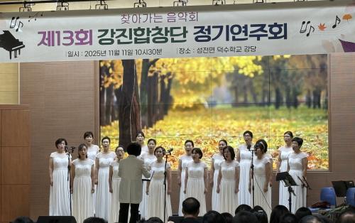 [½Åµ¿¾Æ¹æ¼Û °­Áø=¹Ú±¤¿Á±âÀÚ] °­ÁøÇÕâ´Ü(´ÜÀå ±è°æ¼÷)ÀÌ Áö³­ 11ÀÏ ¿ÀÀü °­Áø±º ´ö¼öÇб³ °­´ç¿¡¼­ ¡®Á¦13ȸ °­ÁøÇÕâ´Ü Á¤±â¿¬ÁÖȸ¡¯¸¦ °³ÃÖÇß´Ù. À̹ø °ø¿¬Àº ¡®Ã£¾Æ°¡´Â À½¾Çȸ¡¯¸¦ ÁÖÁ¦·Î ±º¹Î°ú ÇÔ²²ÇÏ´Â ¹®È­ ¼ÒÅëÀÇ ÀåÀ¸·Î ¸¶·ÃµÆ´Ù °ø¿¬Àº À±ÁöÇö ±³Åë¹æ¼Û¡¦