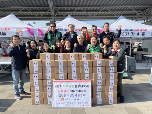 [½Åµ¿¾Æ¹æ¼Û ÀÎõ=À±¹Î½Ä±âÀÚ] ÀÎõ ¼­±¸ °Ë´Üµ¿ ÀÚ»ý´Üü¿¬ÇÕȸ´Â ¼­±¸ ±èÀå´ëÃàÁ¦¸¦ ¸Â¾Æ °ü³» Àú¼Òµæ °¡Á¤ ¹× µ¶°Å³ëÀε鿡°Ô µû¶æÇÑ ¸¶À½À» ÀüÇϰíÀÚ ±èÀå±èÄ¡ ³ª´® Çà»ç¸¦ °¡Á³´Ù. À̳¯ À̸¥ ¾ÆÄ§ºÎÅÍ °Ë´Üµ¿ ¼Ò¼Ó ´Üüȸ¿øµéÀÌ Á¦ÀÛÇÑ ±èÀå±èÄ¡ 100¹Ú½º¿¡ ¼­¡¦