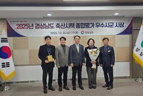 [½Åµ¿¾Æ¹æ¼Û °æ³²ÁøÁÖ=³²±Ã¿µ±â±âÀÚ] ÁøÁֽô Áö³­ 24ÀÏ, °æ»ó³²µµ°¡ Áö³­ 11¿ù µµ³» 18°³ ½Ã±ºÀ» ´ë»óÀ¸·Î ½ÃÇàÇÑ¡®2025³â °æ»ó³²µµ Ãà»ê½ÃÃ¥ ½Ã±º Á¾ÇÕÆò°¡¡¯¿¡¼­ Àå·Á»óÀ» ¼ö»óÇß´Ù°í ¹àÇû´Ù. À̹ø Á¾ÇÕÆò°¡ÀÇ Ç׸ñÀº ¡ãģȯ°æ Ãà»ê¾÷ À°¼º ¹× ¹Ý·Áµ¿¹° º¹Áö±â¹Ý¡¦