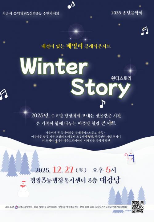 [½Åµ¿¾Æ¹æ¼Û ½ÃÈï½Ã=À̽ŵ¿±âÀÚ] ½ÃÈï½ÃÀ½¾ÇÇùȸ´Â Á¤¿Õ3µ¿ ÁÖ¹ÎÀÚġȸ¿Í Çù·ÂÇØ ¿À´Â 12¿ù 27ÀÏ ¿ÀÈÄ 5½Ã, Á¤¿Õ3µ¿ ÇàÁ¤º¹Áö¼¾ÅÍ 3Ãþ ´ë°­´ç¿¡¼­ 2025 ¼Û³â À½¾Çȸ ¡®Çؼ³ÀÌ ÀÖ´Â ÆÐ¹Ð¸® Ŭ·¡½Ä Äܼ­Æ®, À©ÅÍ ½ºÅ丮¡¯¸¦ °³ÃÖÇÑ´Ù. À̹ø ¼Û³â À½¾Çȸ´Â ¿¬¸»À» ¸Â¾Æ ¡¦