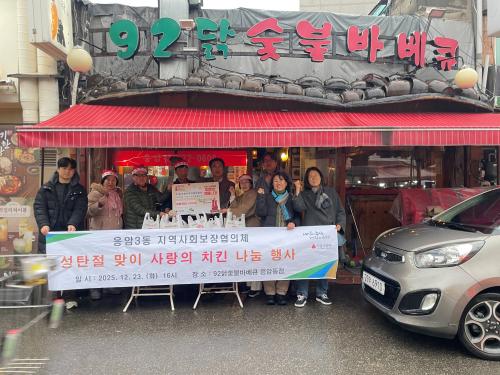 [½Åµ¿¾Æ¹æ¼Û ÀºÆò±¸=À̽ŵ¿±âÀÚ] ¼­¿ï ÀºÆò±¸ ÀÀ¾Ï3µ¿Àº Áö³­ 23ÀÏ ¼ºÅºÀýÀ» ¸ÂÀÌÇØ ½¡ºÒ±¸ÀÌ Ä¡Å²À» Ãë¾à°èÃþ °¡±¸¿¡ Àü´ÞÇÏ´Â ¡®»ç¶ûÀÇ Ä¡Å² ³ª´® Çà»ç¡¯¸¦ ÃßÁøÇß´Ù°í ¹àÇû´Ù. Áö¿ª»çȸº¸ÀåÇùÀÇü ÁÖ°üÀ¸·Î ¿­¸° À̹ø Çà»ç´Â ´ë¸²½ÃÀå¿¡ À§Ä¡ÇÑ 92´ß ½¡ºÒ¹Ùº£Å¥ ÀÀ¡¦