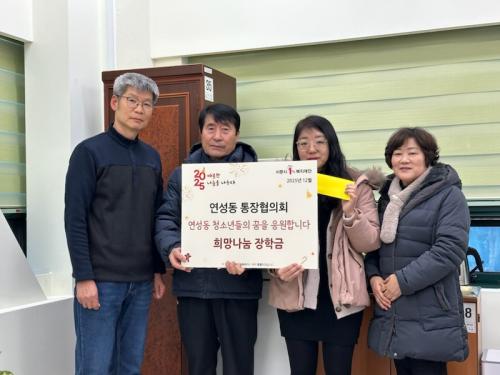 ¿¬¼ºµ¿ ÅëÀåÇùÀÇȸ, û¼Ò³â ÀåÇÐ±Ý Áö¿øÀ¸·Î Èñ¸Á ÀüÇØ