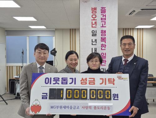 [½Åµ¿¾Æ¹æ¼Û °æ³²±èÇØ=³²±Ã¿µ±â±âÀÚ] ±èÇØ½Ã ºÎ¿øµ¿ÇàÁ¤º¹Áö¼¾ÅÍ´Â Áö³­ 30ÀÏ, MGºÎ¿ø»õ¸¶À»±Ý°í°¡ ¡®»ç¶ûÀÇ Á»µµ¸® ¿îµ¿¡¯ÀÇ ÀÏȯÀ¸·Î ¸¶·ÃÇÑ ¼º±Ý 100¸¸¿øÀ» ºÎ¿øµ¿ÇàÁ¤º¹Áö¼¾ÅÍ¿¡ ±âŹÇß´Ù°í ¹àÇû´Ù. ¡®»ç¶ûÀÇ Á»µµ¸® ¿îµ¿¡¯Àº ÀÛÀº °ÍÀ» Á¶±Ý¾¿ ´ú¾î³»¾î ¾î·Á¿î¡¦