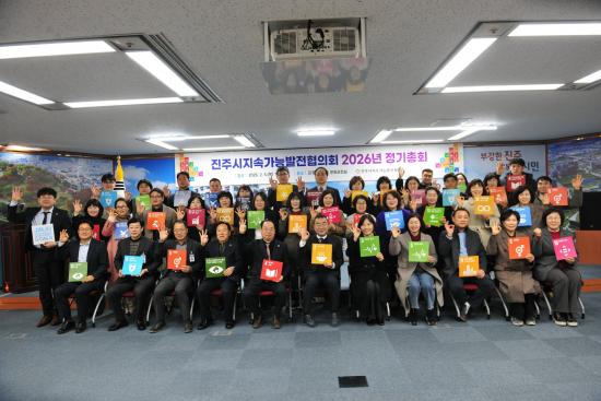 [½Åµ¿¾Æ¹æ¼Û °æ³²ÁøÁÖ=±è¸í¼ö±âÀÚ] ÁøÁÖ½ÃÁö¼Ó°¡´É¹ßÀüÇùÀÇȸ(ÀÌÇÏ Áö¼ÓÇù)´Â 5ÀÏ ÁøÁÖ½Ãû 3Ãþ ¹®È­°­Á½ǿ¡¼­ °ü°èÀÚ 50¿© ¸íÀÌ Âü¼®ÇÑ °¡¿îµ¥ ¡®2026³â Á¤±âÃÑȸ¡¯¸¦ °³ÃÖÇß´Ù. À̳¯ Çà»ç´Â ¹ÚÀϵ¿ °øµ¿ÀÇÀå(ÁøÁֽà ºÎ½ÃÀå)ÀÌ ¡®Áö¼Ó°¡´É ¹ßÀü¡¯ ½Çõ¿¡ ±â¿©ÇÑ À¯¡¦