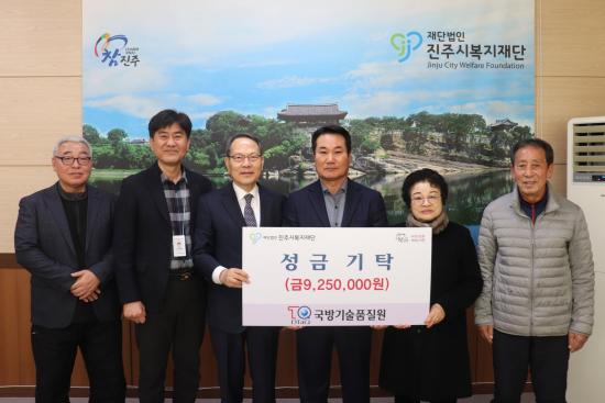[½Åµ¿¾Æ¹æ¼Û °æ³²ÁøÁÖ=³²±Ã¿µ±â±âÀÚ] ±¹¹æ±â¼úǰÁú¿ø ÀÓ¡¤Á÷¿øµéÀº 13ÀÏ ¼³ ¸í ÀýÀ» ¸Â¾Æ Áö¿ª»çȸ ¾î·Á¿î ÀÌ¿ôÀ» µ½±â À§ÇØ ÀÚ¹ßÀûÀ¸·Î ¸ðÀº ¼º±Ý 925¸¸ ¿øÀ» ÁøÁֽú¹ÁöÀç´Ü¿¡ ±âŹÇß´Ù. À̳¯ ±âŹµÈ ¼º±ÝÀº ±¹¹æ±â¼úǰÁú¿ø ÀÓ¡¤Á÷¿øµéÀÌ ÀÚ¹ßÀûÀ¸·Î ¸ð±ÝÇÑ ¼º±ÝÀ¸¡¦