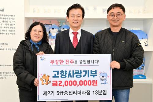 [½Åµ¿¾Æ¹æ¼Û °æ³²ÁøÁÖ=³²±Ã¿µ±â±âÀÚ] ÁøÁֽô 23ÀÏ Áö¹æÀÚÄ¡ÀÎÀç°³¹ß¿ø Á¦2±â 5±Þ ½ÂÁø¸®´õ°úÁ¤ Á¦13ºÐÀÓ ±³À°»ý 20¿© ¸íÀÌ °íÇâ»ç¶û±âºÎ±Ý 200¸¸ ¿øÀ» Àü´ÞÇØ ¿Ô´Ù°í ¹àÇû´Ù. À̹ø ±âºÎ´Â KAIȸÀüÀͺñÇ༾ÅÍ, ÁøÁÖ¼º, ÁøÁÖ³²°­À¯µîÀü½Ã°ü µî ÁøÁÖ½ÃÀÇ ¿ìÁÖÇ×°ø»ê¾÷¡¦