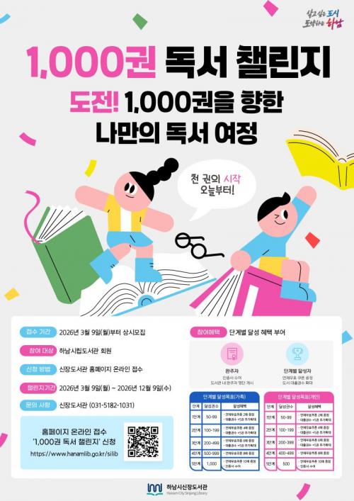 [½Åµ¿¾Æ¹æ¼Û Çϳ²½Ã=À̽ŵ¿±âÀÚ] Çϳ²½Ã½ÅÀåµµ¼­°üÀº ½Ã¹ÎÀÇ Áö¼ÓÀûÀÎ µ¶¼­ Âü¿©¿Í »ýȰ ¼Ó Àб⠽À°ü Á¤ÂøÀ» À§ÇØ ¿À´Â 3¿ù 9ÀϺÎÅÍ ¡®1,000±Ç µ¶¼­ 縰Áö¡¯¸¦ ¿î¿µÇÑ´Ù. À̹ø »ç¾÷Àº ´ë»óº° Ư¼ºÀ» °í·ÁÇØ °¡Á· ´ÜÀ§ Âü¿©¿Í û¼Ò³â¡¤¼ºÀÎ °³ÀÎ Âü¿©·Î ±¸ºÐÇØ ÁøÇࡦ